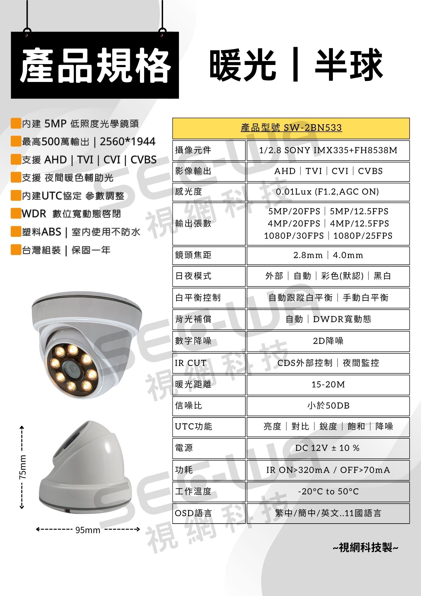 500萬|同軸|暖光半球